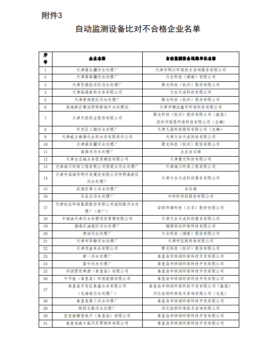 三、本次共對(duì)229家企業(yè)自動(dòng)監(jiān)測(cè)設(shè)備開(kāi)展比對(duì)監(jiān)測(cè),159家企業(yè)比對(duì)不合格(名單見(jiàn)附件3)。